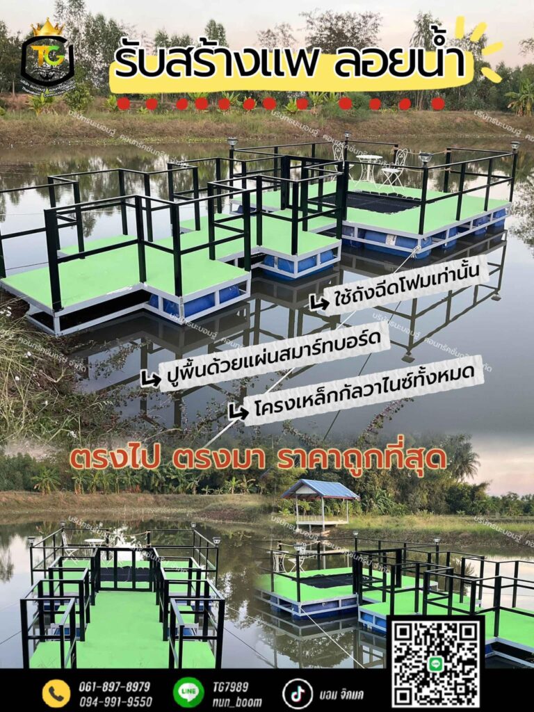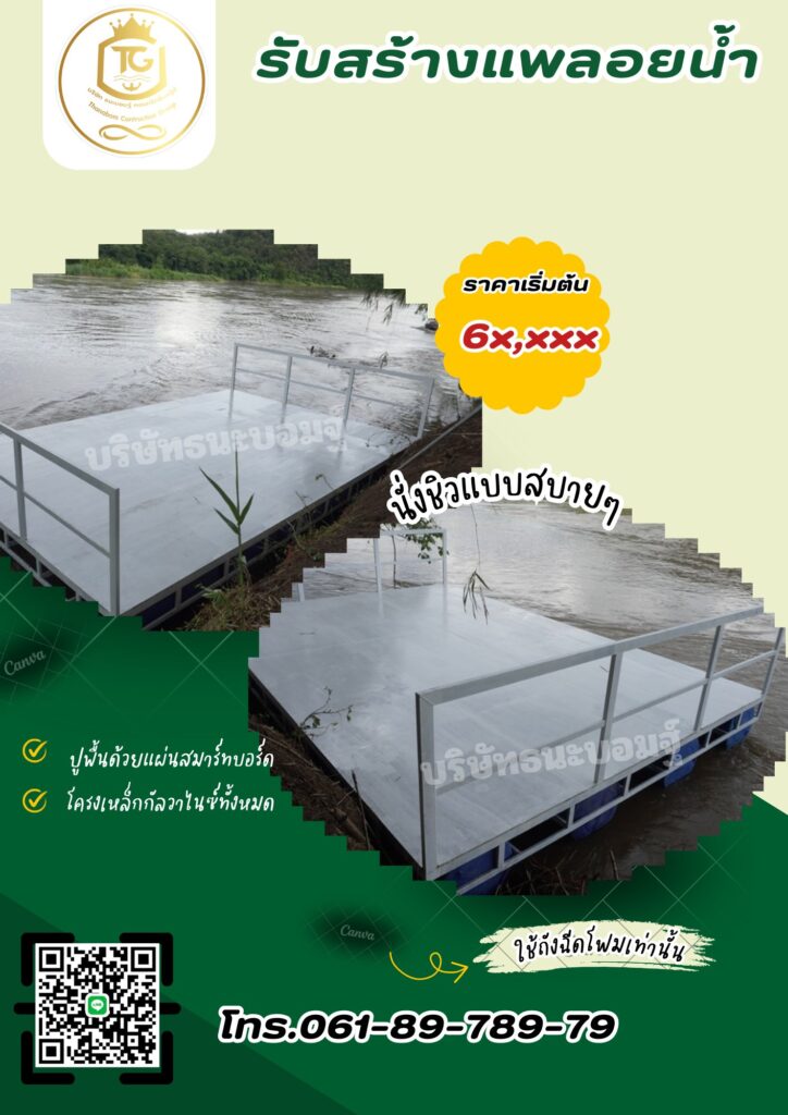 บริษัทของเรามีความเชี่ยวชาญในการสร้างแพลอยน้ำตามแบบและงบประมาณของลูกค้า เราสามารถสร้างแพลอยน้ำในหลากหลายรูปแบบเพื่อตอบสนองความต้องการที่แตกต่างกัน ไม่ว่าจะเป็นแพลอยน้ำในเขื่อนที่ต้องการความมั่นคงและปลอดภัย แพลอยน้ำ ทะเลที่ทนทานต่อสภาพแวดล้อมทางทะเล แพลอยน้ำ ที่ทำเป็นท่าเรือเพื่อการขนส่งและจอดเรือ หรือแพลอยน้ำที่เป็นศาลาเพื่อความสงบและความสวยงาม